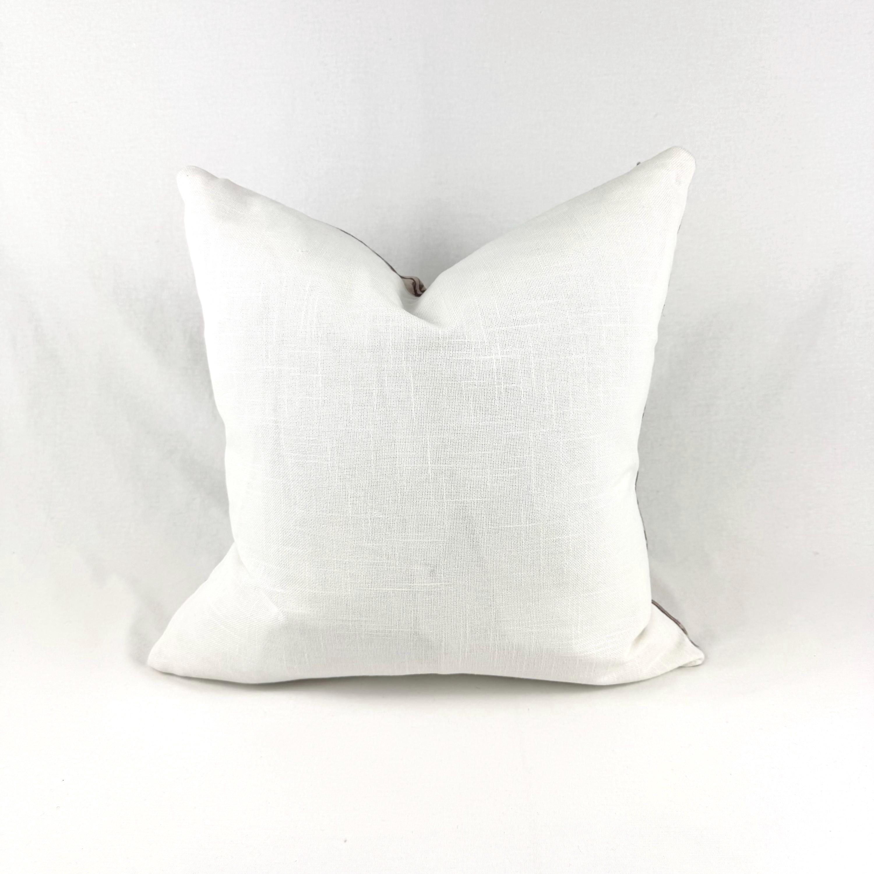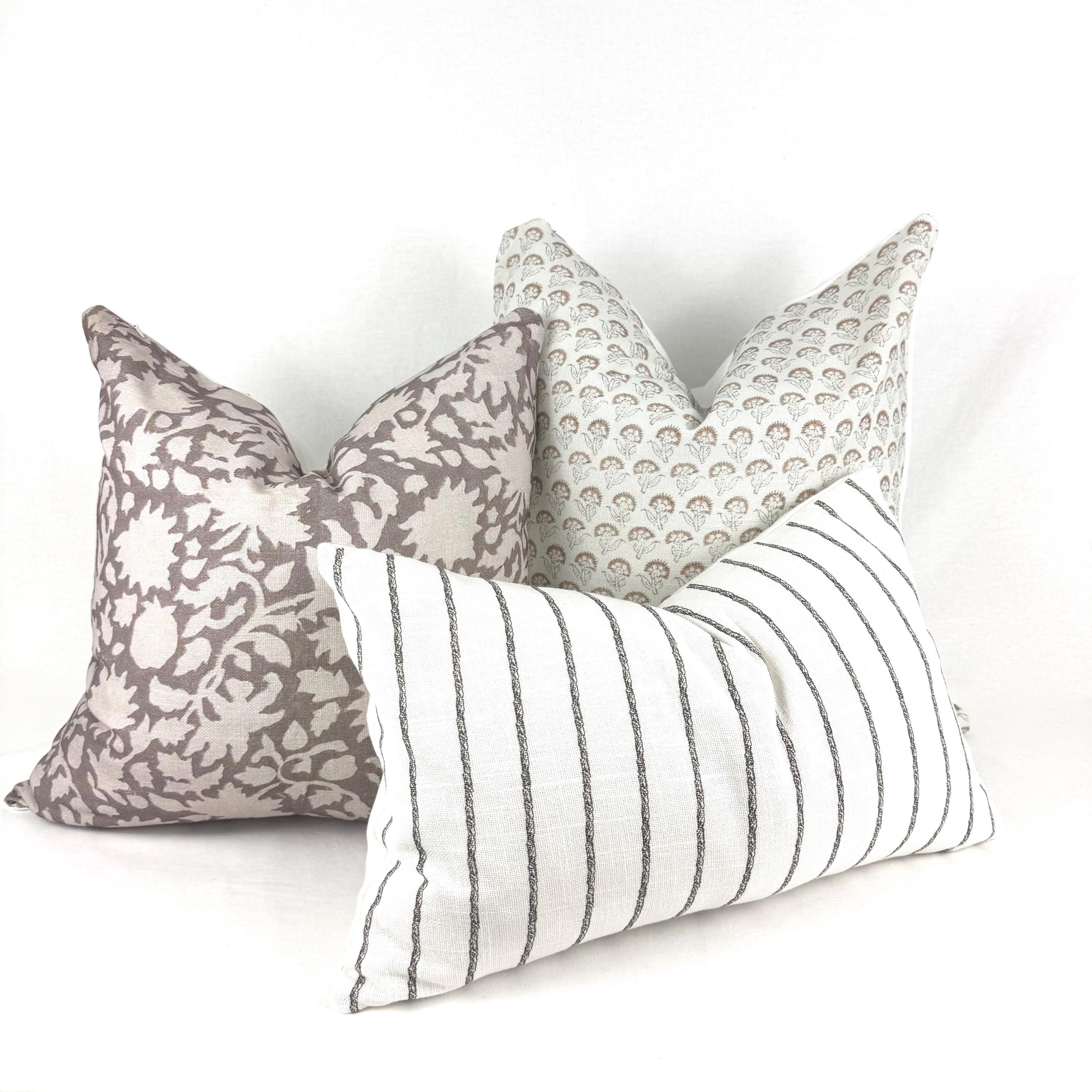 MARGOT is our 18 x 18” soft brown and beige blockprint square pillow. It’s versatile and understated, with a sophisticated narrow black stripe design that acts as a perfect neutral layering piece to ground your pillow combination.