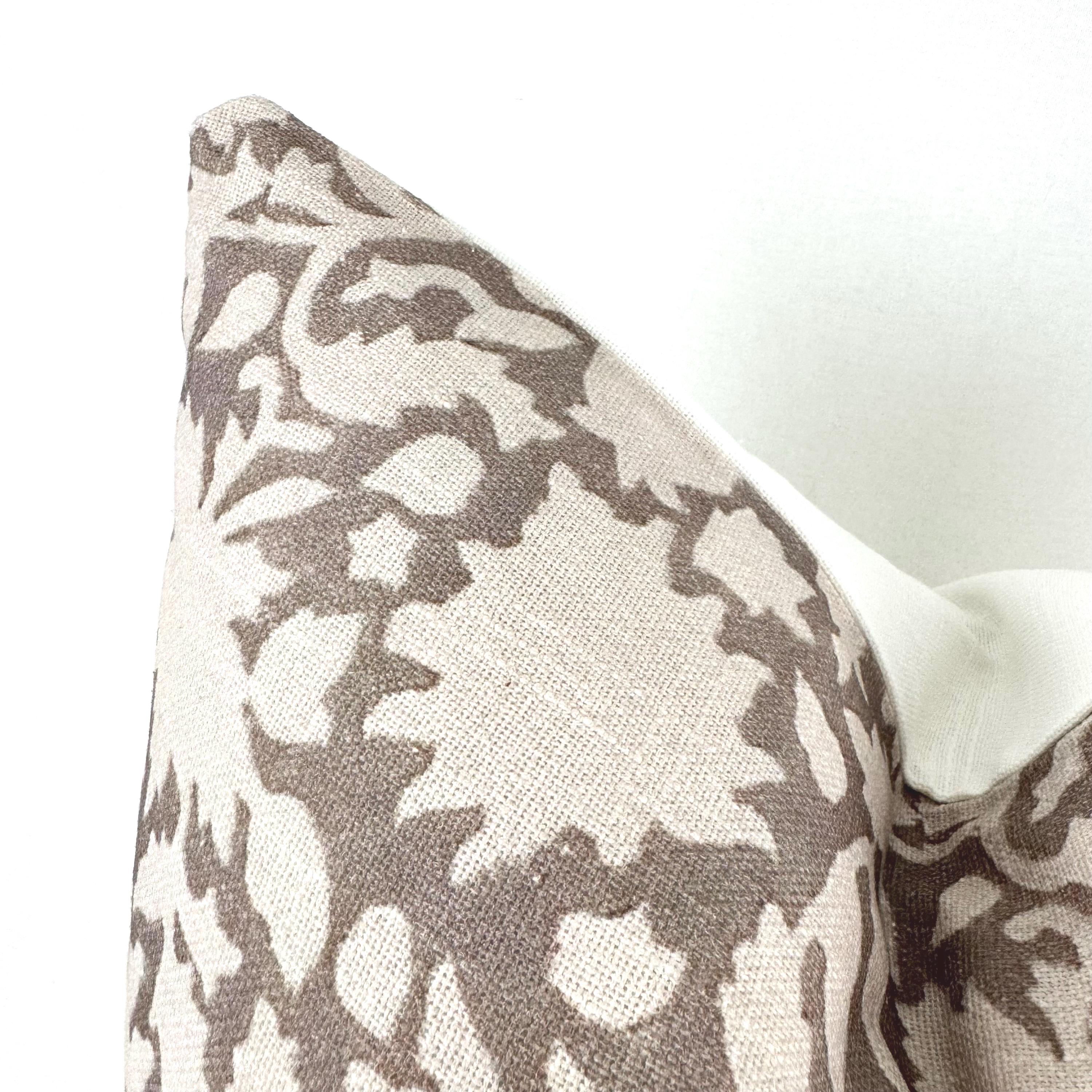 Featuring muted brown hues and a unique floral hand-block design, the MARGOT pillow infuses a warm vintage look and feel into your textile mix.