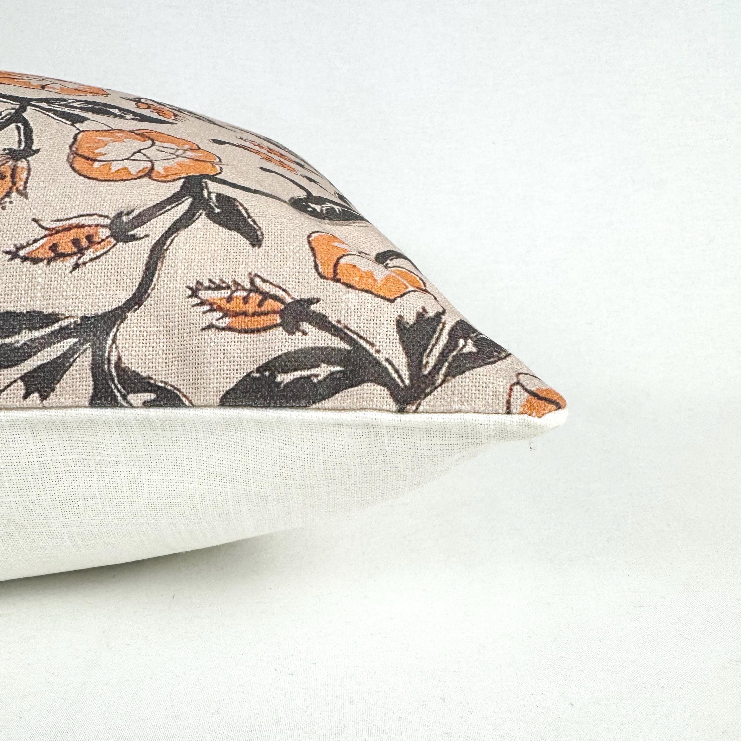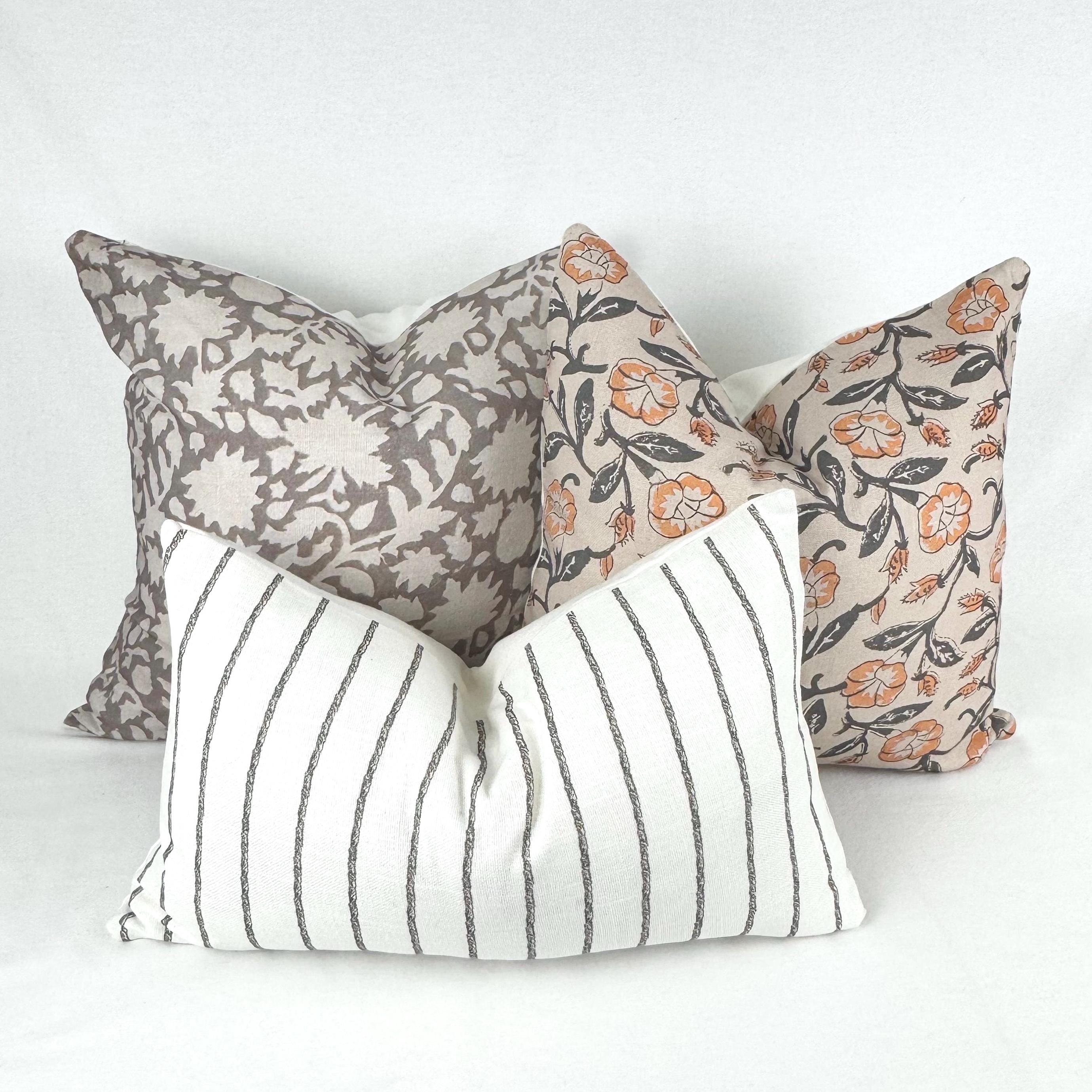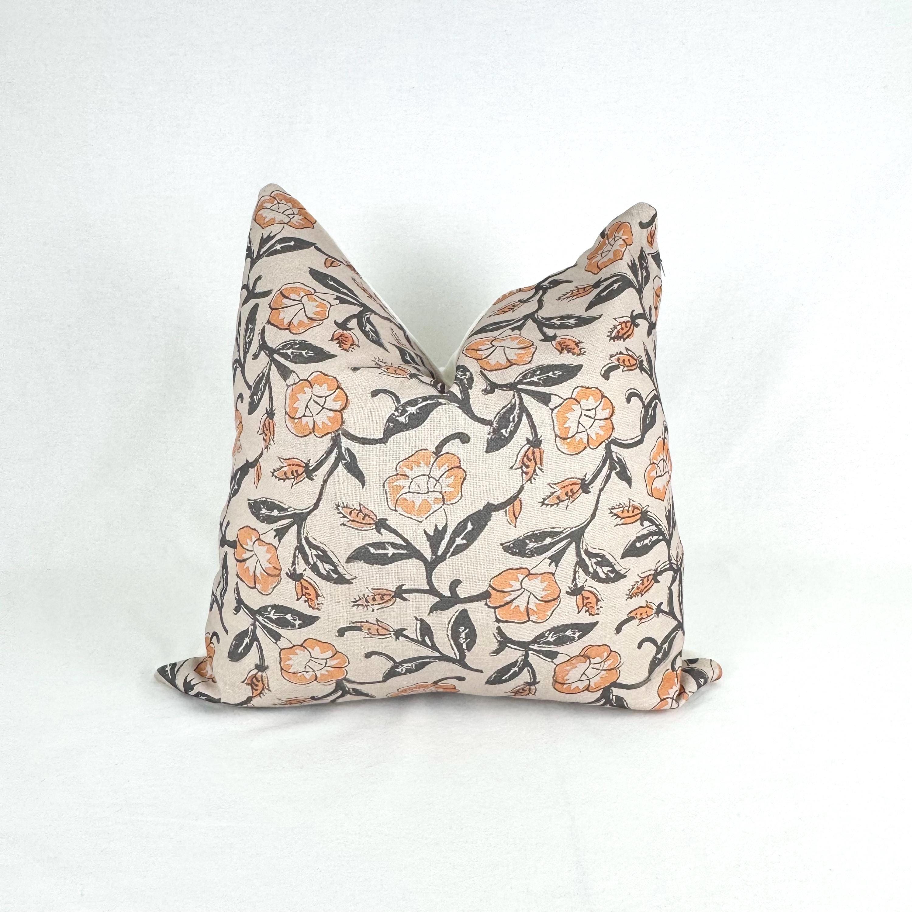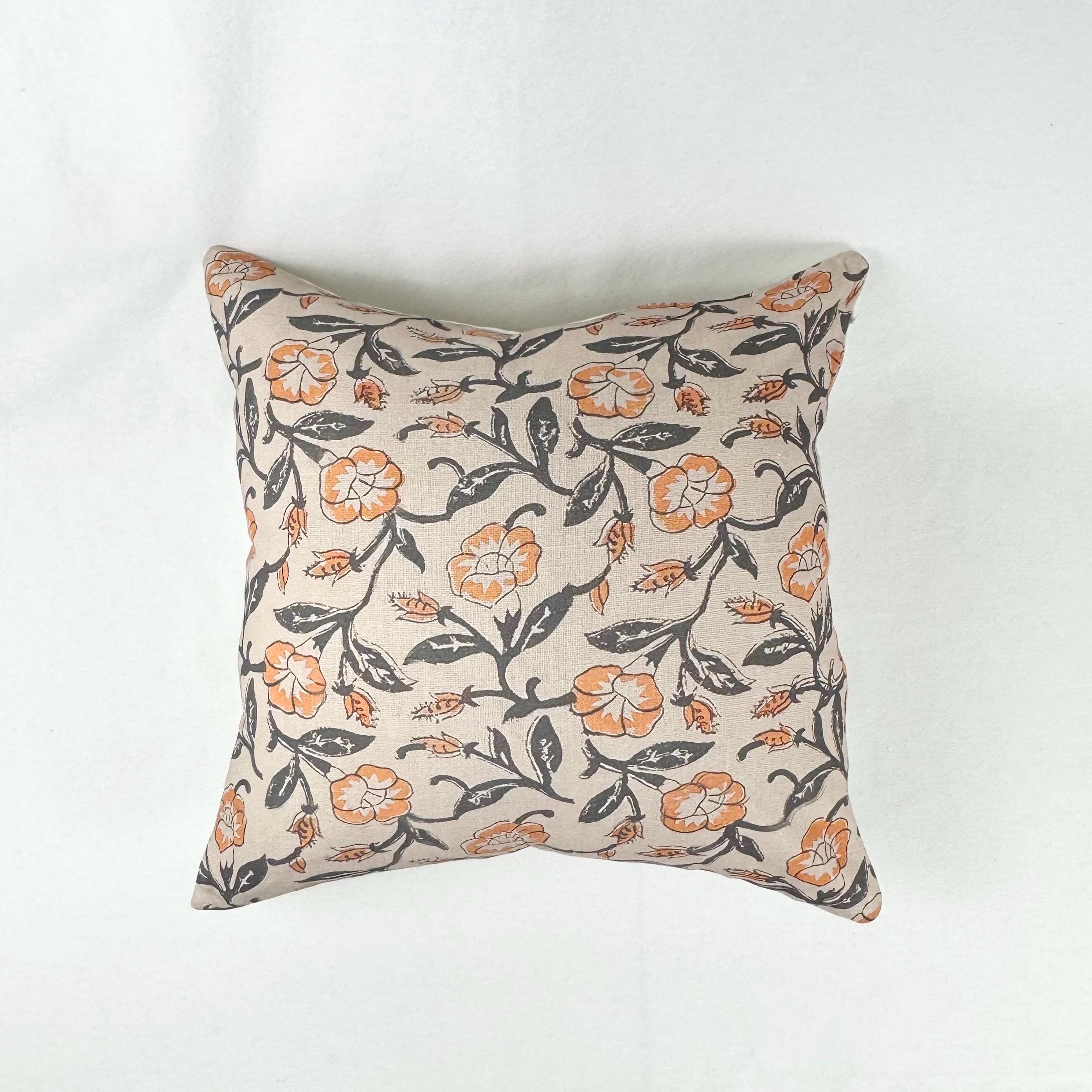 MARIGOLD is our 18 x 18” soft beige and yellow blockprint square pillow. It’s light and airy with a grey leaf pattern, and it’s sure to add a layer of whimsy and colour to your pillow combination.